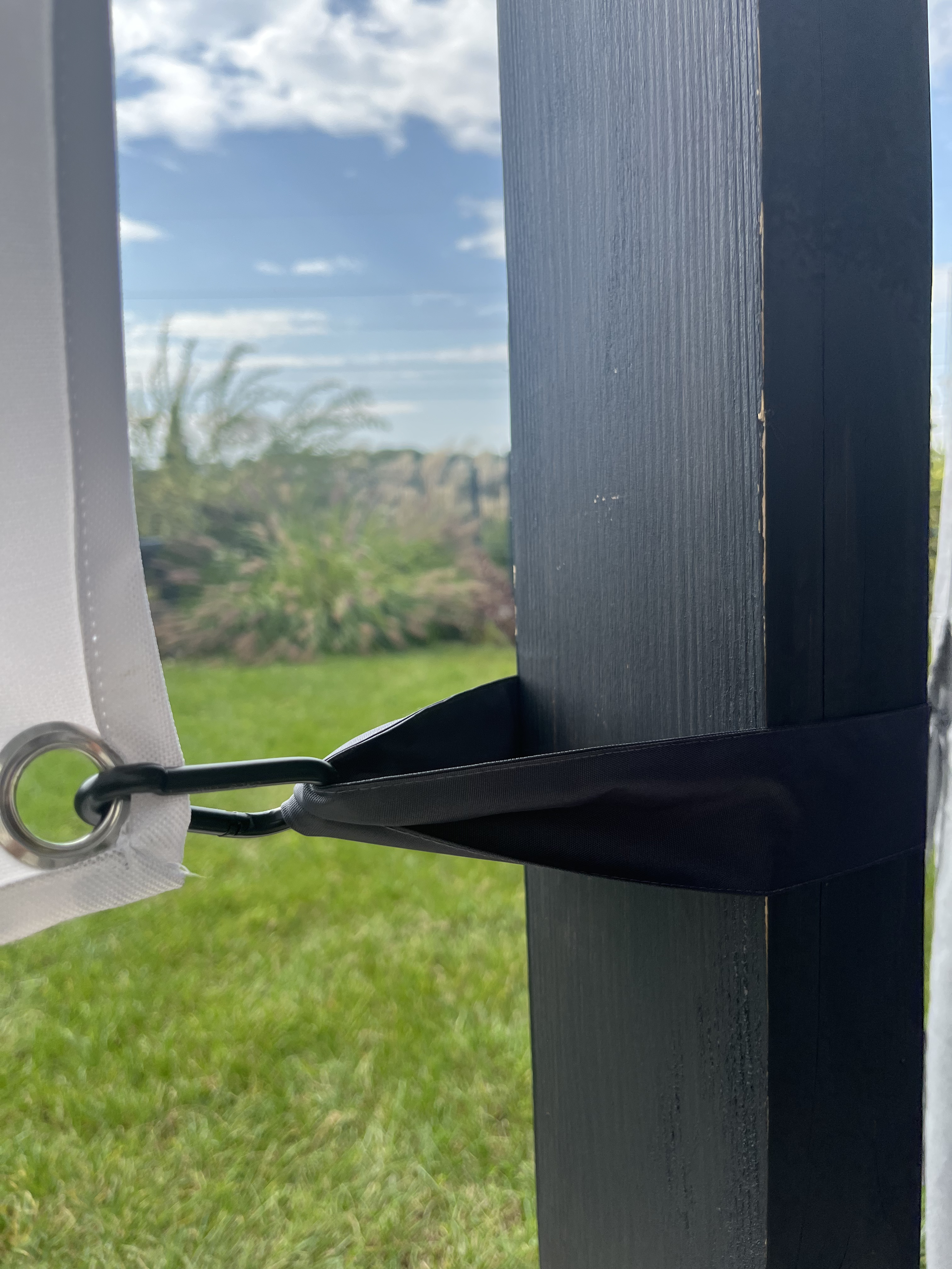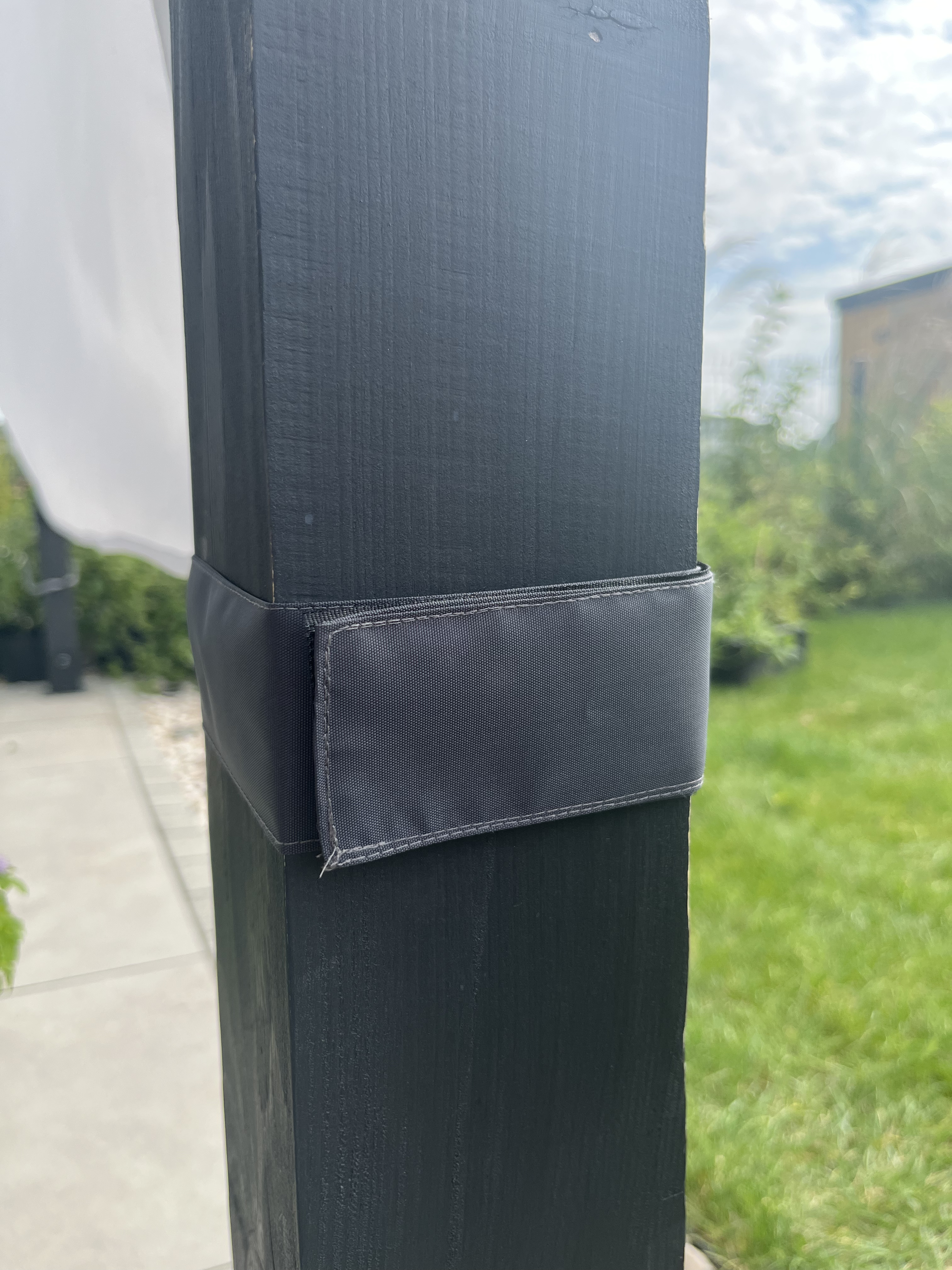✅ Taśmy mocujące z rzepem (łączna długość 60 cm, regulacja rzep 10 cm. Po złożeniu pasków na pół mają ok. 30 cm – dlatego odstęp ekranu od konstrukcji nie powinien przekraczać 10 cm.)